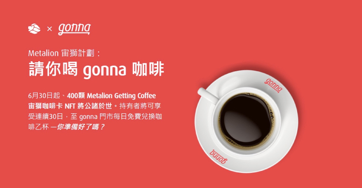 為迎接 Web 3 世代來臨,雄獅集團宣布以「宙獅計劃」(Metalion)為名正式進軍元宇宙,Discord 自 6 月初公開至今已有接近 3000人加入,為積極搶進新世代旅遊社群市場,首波將由雄獅集團旗下之餐飲事業體欣食旅品牌 「gonna共樂遊」 打頭陣,於6月30日起,,透過宙獅俱樂部官網開放購買(鑄造),公售400顆 Metalion Getting Coffee 宙獅咖啡卡 NFT。