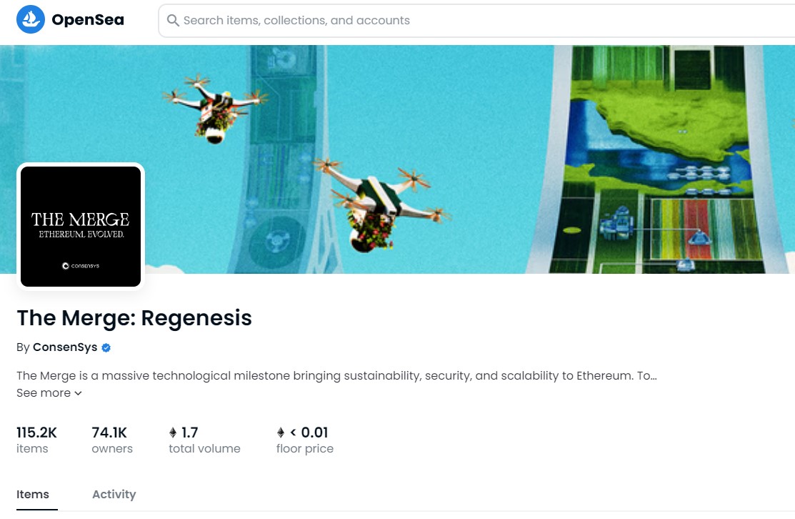 以太坊於 9 月 15 日下午已順利合併完成,這對區塊鏈市場來說是歷史性的一刻。而 Metamask 母公司 Consensys 為了慶祝以太坊合併成功, 宣布推出合併慶祝的 NFT 「The Merge:Regenesie」(合併:重生)供用戶免費鑄造,自合併成功起 72 小時內開放所有用戶鑄造。